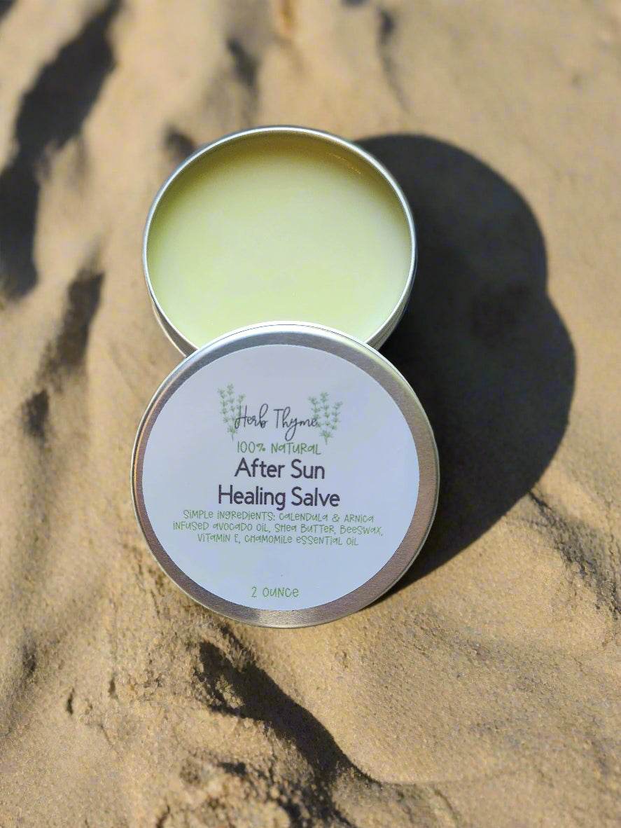 Soothe and nourish sun-kissed skin with our After Sun Salve—a gentle, herbal balm formulated to ease sunburn, redness, and dryness after sun exposure.